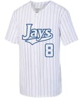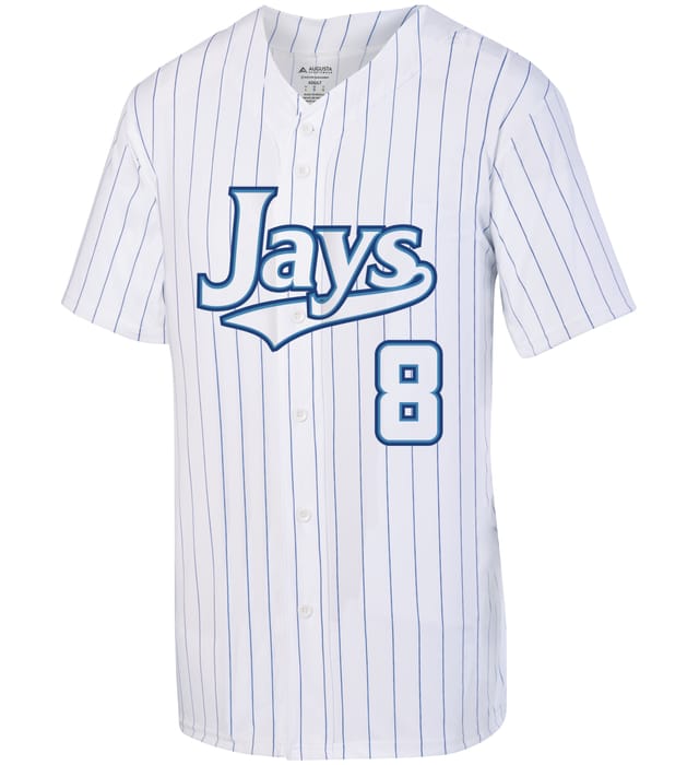 Made for traditional on-field wear, this moisture-wicking jersey features a pinstripe design and full-button front.