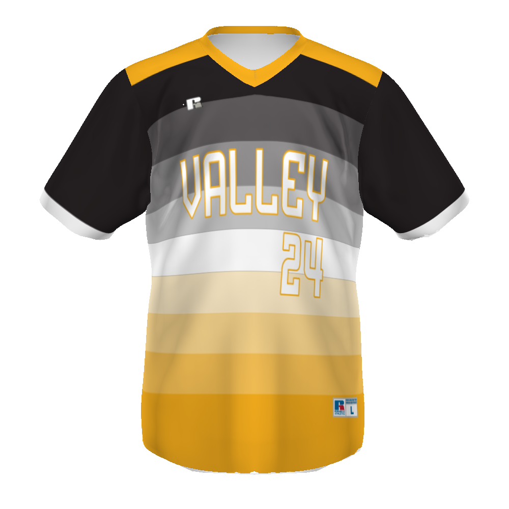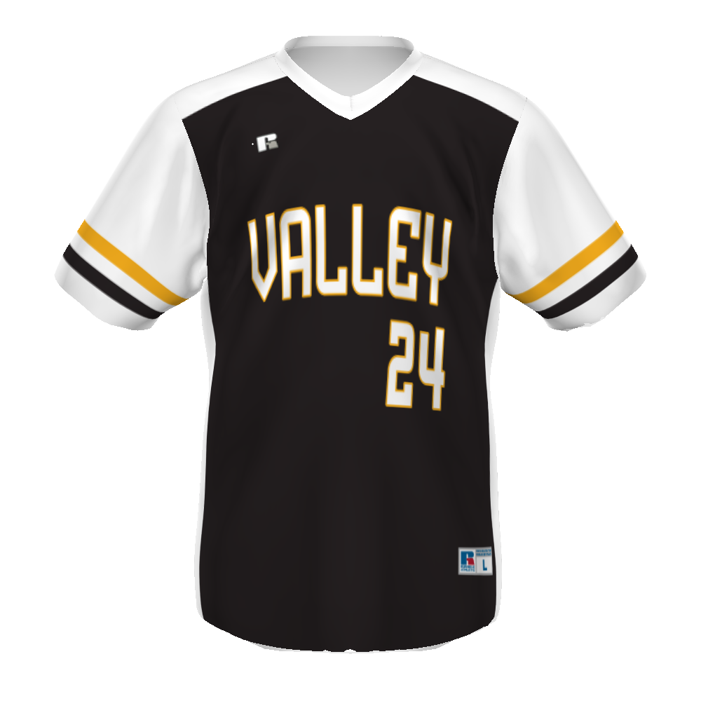 91% polyester/9% spandex jersey engineered with lightweight, breathable stretch fabric Garment protects against the sun with 15+ UPF Dri-Power® Moisture Wicking Technology Tag-free label Set-in sleeves Fishtail bottom Step up to the plate with confidence in our Sublimated V-Neck Baseball Jersey from Russell Athletic®. Crafted for the athlete in you, this jersey utilizes the prowess of Dri-Power® Moisture Wicking Technology, ensuring that as the game heats up, you remain cool and composed. Complemented by a fabric blend of 91% polyester and 9% spandex, you're guaranteed lightweight comfort paired with the mobility needed to make those crucial plays.
