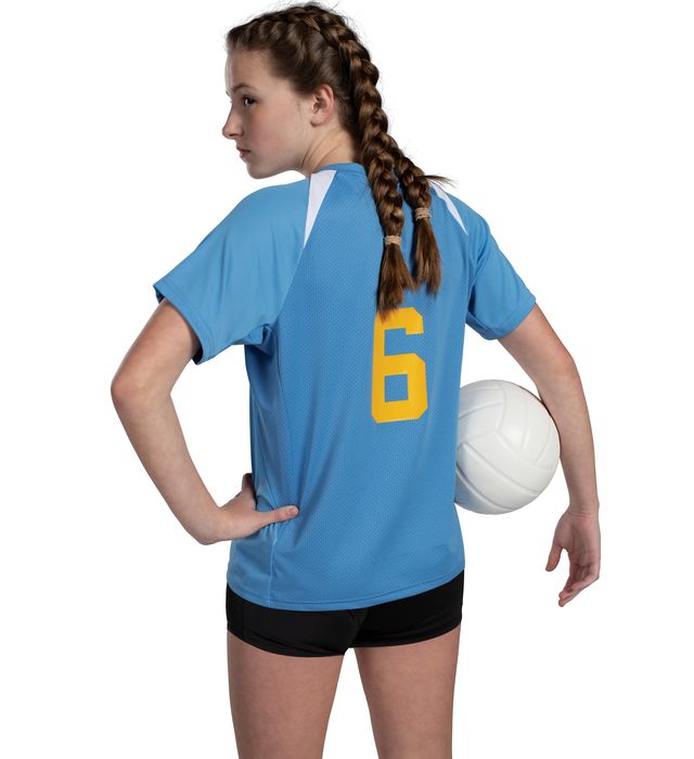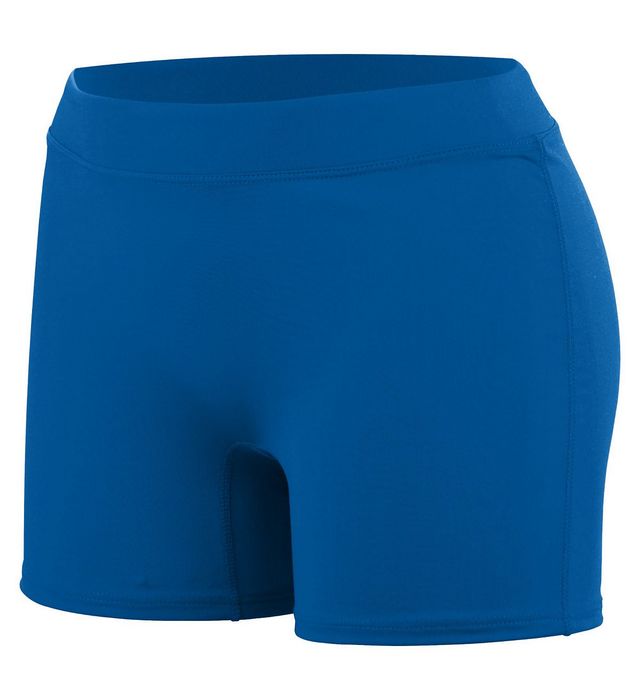 Heavyweight ladies' fit volleyball shorts with moisture wicking fabric, a wide waistband, and flatlock stitching for secure fit on the court.