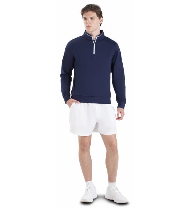 Eco-Revive stretch pullover with moisture-wicking fabric, quarter-zip styling, and self-fabric cuffs and bottom band for everyday team wear.