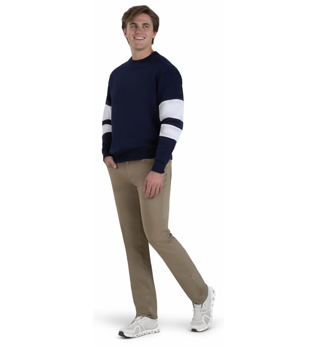 This midweight crew delivers cotton-blend fleece comfort with set-in sleeves for daily wear.
