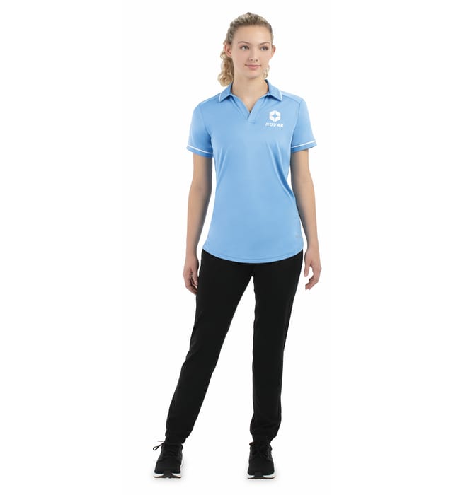 90% polyester/10% spandex, 4-way stretch woven fabric Ladies' fit Covered elastic waistband with drawcord with silicone dipped tips (inside drawcord on XS-S) Front pockets Covered elastic cuff at leg opening Tapered leg Water repellent