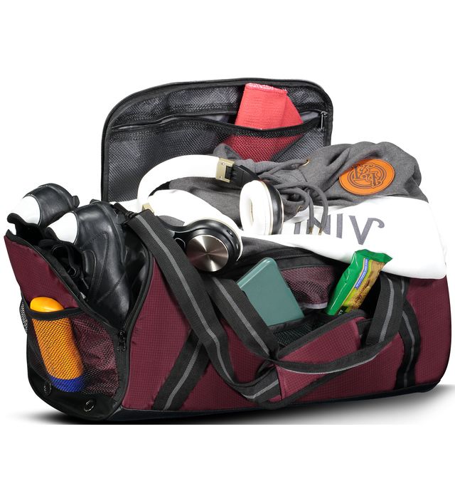 - Zippered main compartment has large U-shaped opening with two zipper pulls