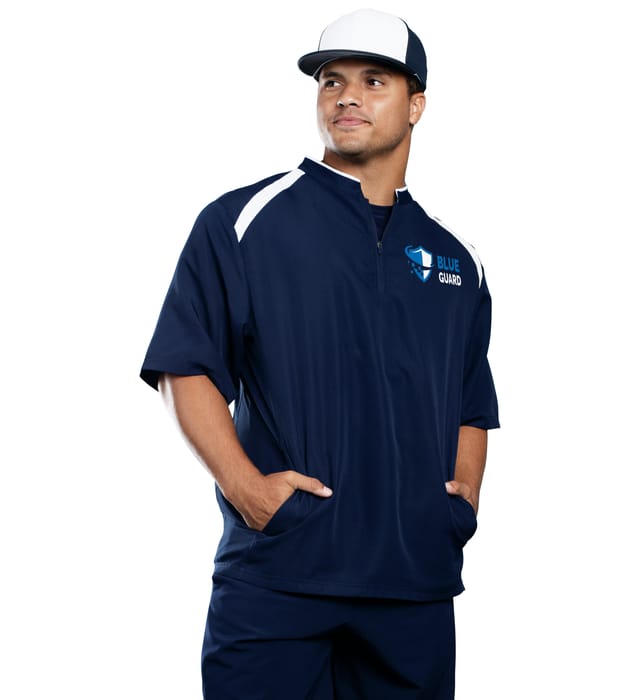 Areo-Tec 100% polyester Stretch mesh at center back for maximum mobility Woven label Quarter zip pullover style with zipper garage Low profile collar Set-in sleeves Side seam pockets Side seam zipper for easy on/off